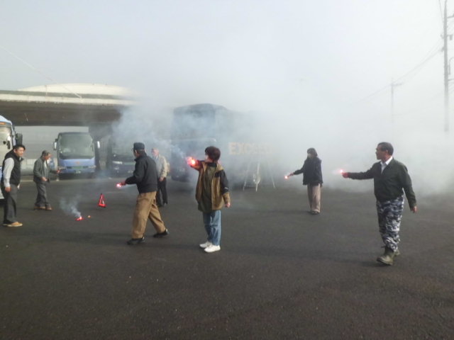 発炎筒・三角停止版・バス車両避難口開閉・避難の誘導の仕方